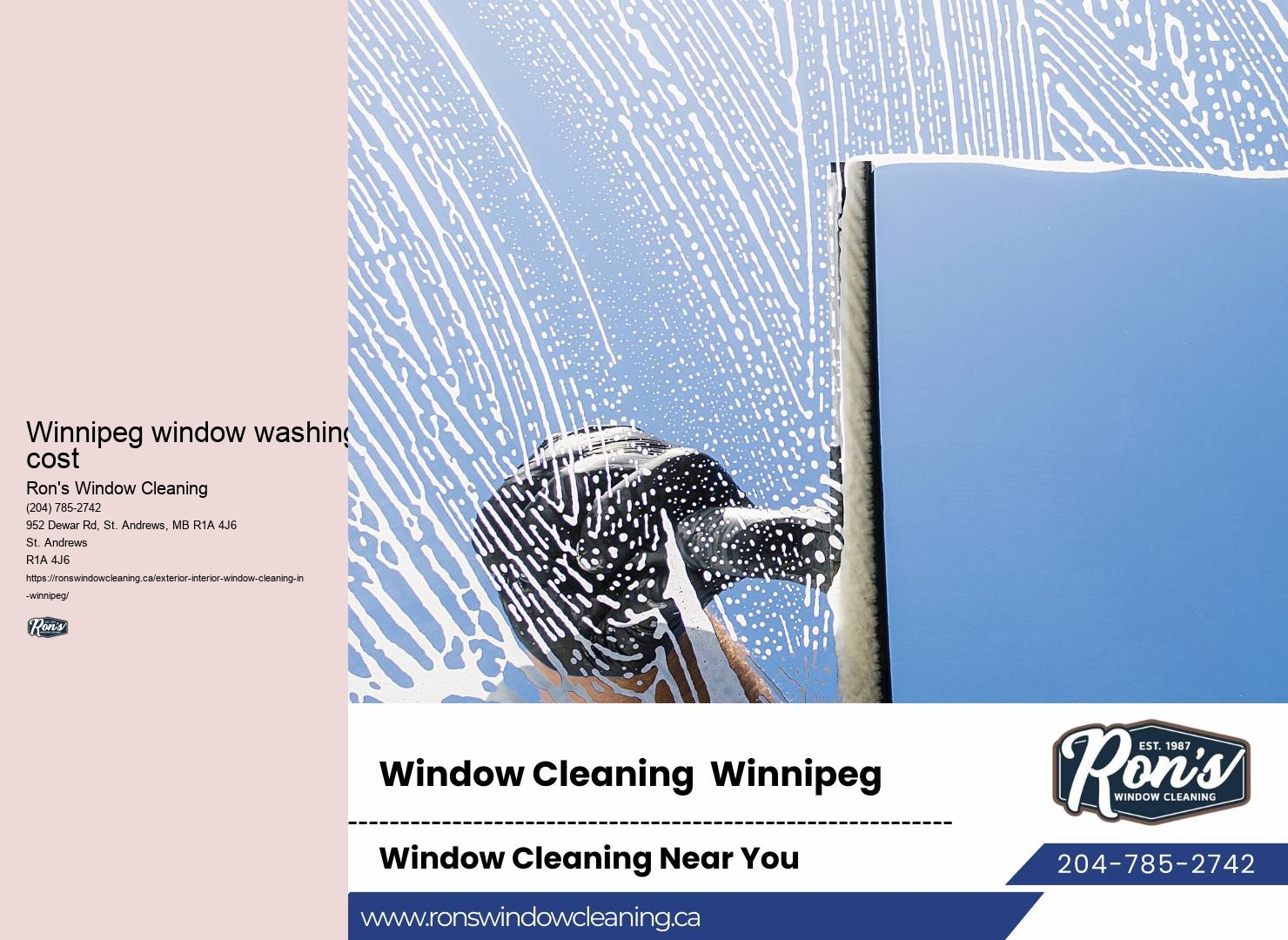 Beyond eliminating pests, we're also stepping up your outdoor living experience with innovative comfort enhancements. Andrews, Ron's Window Cleaning adapts to fit your specific requirements. They always leave the place cleaner than they found it. Window cleaning techniques It's not just about the windows; it's the respect and attention they bring to their work.' This sentiment is echoed across numerous reviews, emphasizing not just the sparkling clean windows, but the professionalism and friendliness of the staff. In a world where the clarity of your windows directly correlates to the clarity of your life's ambitions, Ron's Window Cleaning emerges as Winnipeg's undeniable champion of transparency.